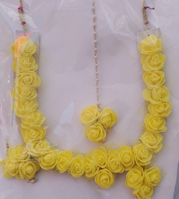 Artificial yellow flower jewellery set, Use for a Haldi or Mehndi ceremony