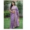 - Colors and Design: The item features a prominent central panel in a beige or light gold color with a woven texture. This is bordered by sections of light purple or lavender fabric.