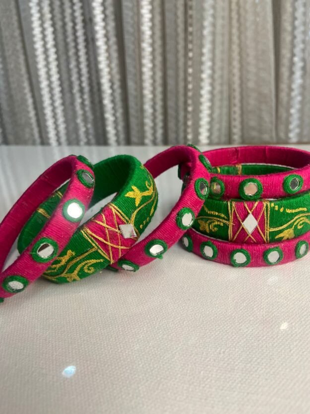 Special Indian bangles hand crafted used with special Gujarati beads and bright green thread and with 100% cotton thread