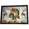- The painting depicts two deer in a natural setting with abstract, gold-accented leaves and a marble-patterned background.