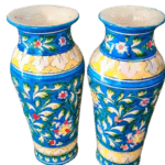 This is a beautiful pair of hand-painted decorative vases featuring traditional floral artwork. The vases are finished in a vibrant blue base with intricate multicolor flower and leaf patterns, giving them a classic and elegant look. Crafted with fine detailing, these vases reflect traditional Indian art and craftsmanship.