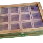 This elegant sopari (areca nut) storage box is handcrafted from natural bamboo, making it eco-friendly and durable. The box features a transparent top lid, allowing a clear view of the contents while keeping them protected. Inside, it has separate compartments to neatly store sopari, cardamom, mouth fresheners, or other small items.