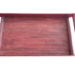 This is a beautifully handcrafted bamboo tray, designed with a sleek dark finish. It features sturdy side handles for easy carrying and small supporting legs for better stability. Perfect for serving tea, snacks, or for use as a decorative display tray.