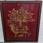 This beautiful wall art is handcrafted from natural bamboo and features a traditional Indian design of a sacred cow with a calf beneath a flourishing tree. The fine bamboo work is set against a rich maroon background and framed neatly, giving it an elegant and ethnic look.