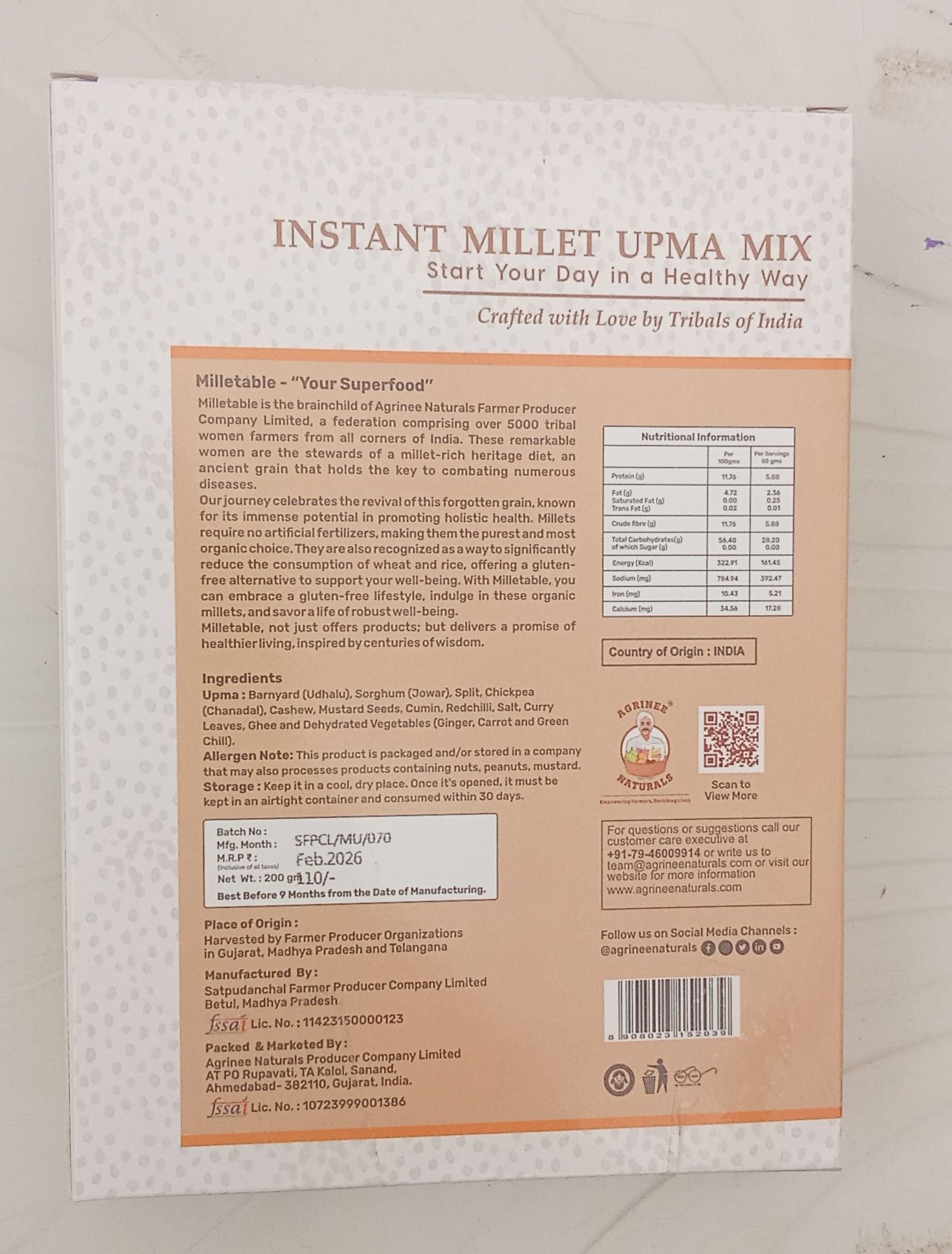 Instant Millet Upma Mix is a healthy and tasty breakfast option made from nutritious millets and natural ingredients. It is easy to cook and ready in just a few minutes. Rich in fiber and essential nutrients, this upma mix helps keep you energetic and full for a longer time. Perfect for a quick, wholesome, and traditional Indian meal to start your day in a healthy way. 🌾🥣