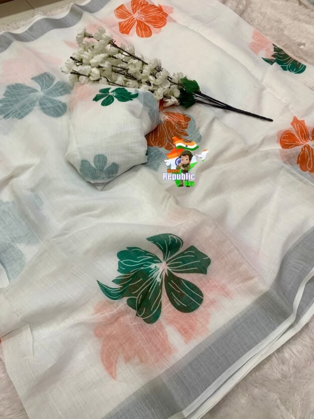 - Product Name: Linen Silver Patta Digital Print Saree | Tiranga Saree
