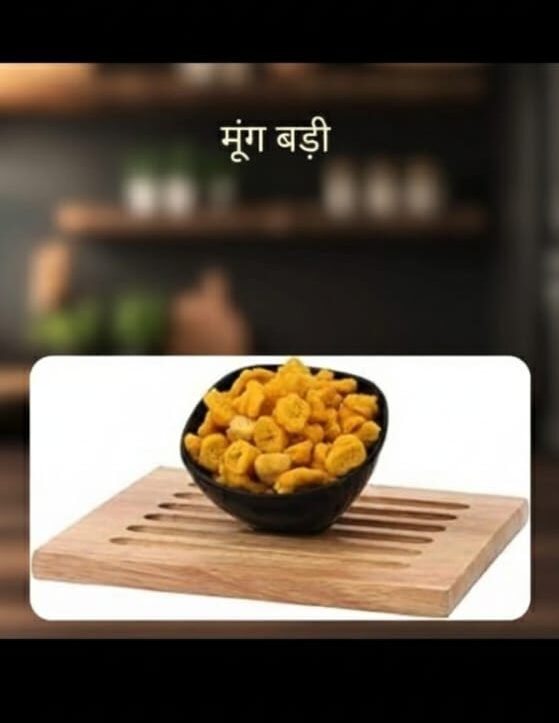 The items in the image are Moong Dal Badi (also known as Moong Dal Wadi or Mangodi), which are sun-dried dumplings made from a spiced mung bean paste. They are a traditional, protein-rich ingredient used extensively in Indian cuisine, particularly in the northern and western regions of India.