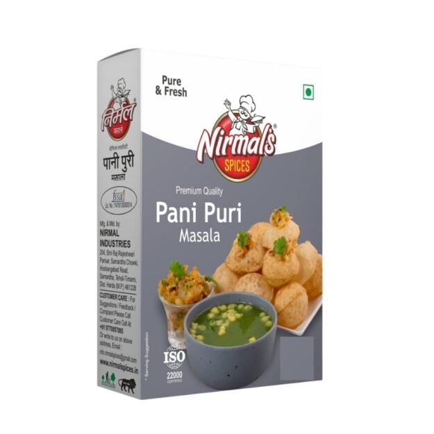 Nirmal’s Premium Quality Pani Puri Masala, a spice blend used to prepare the popular Indian street food, pani puri.