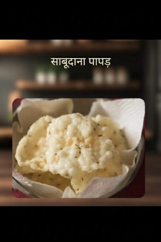 Homemade sabudana papad,traditional, thin, disc-shaped Indian snack food. They are characterized by their light, crispy texture and are made from sabudana pearls, water, and minimal seasonings like cumin seeds, rock salt (especially for fasting periods), and sometimes chili or ginger paste.