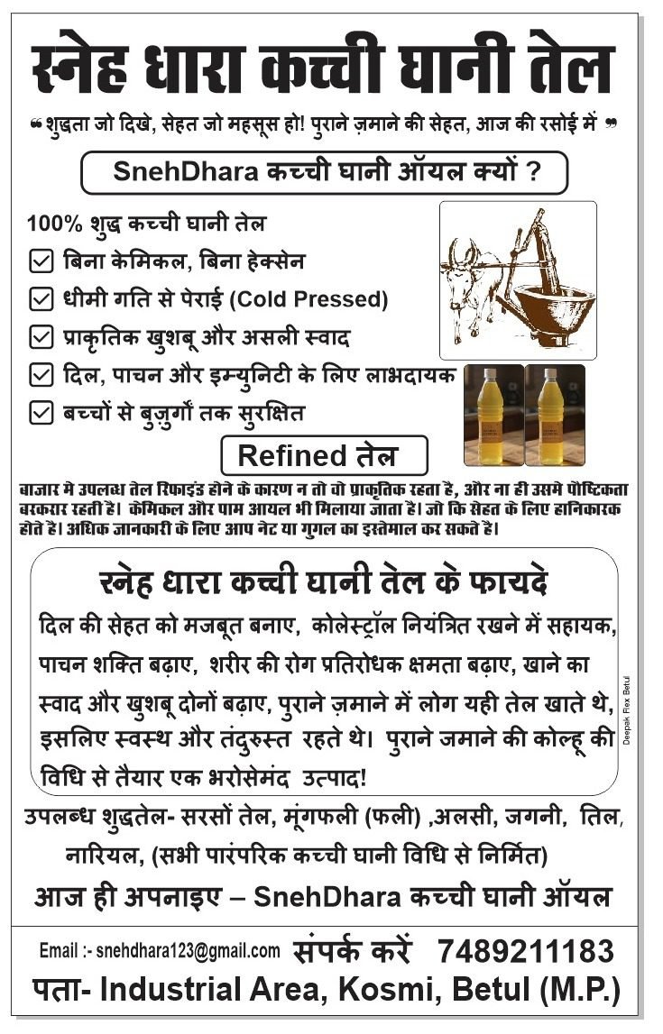 - Store Name: SnehDhara Kachhi Ghani Oil Kosmi Betul