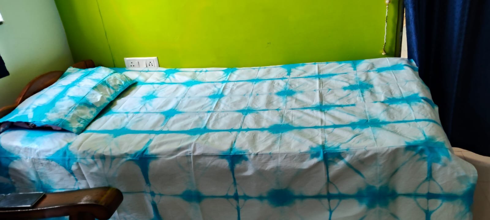 - Blue coloured cotton tie and die bedsheet with rich quality cotton and non removable colour for better results first wash with salt and alum water